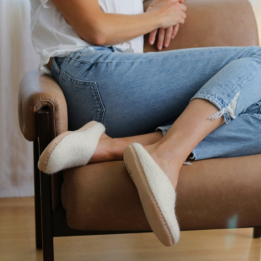 Soft, cozy and hand felted from responsibly sourced New Zealand wool. The Astoria house slipper for women is not your average boiled wool slipper. Shaped for a sleek and modern silhouette with minimalist styling. Warm, breathable and naturally odor resistant. Handmade from the highest quality natural materials, these are a perfect gift for yourself or a lucky loved one!